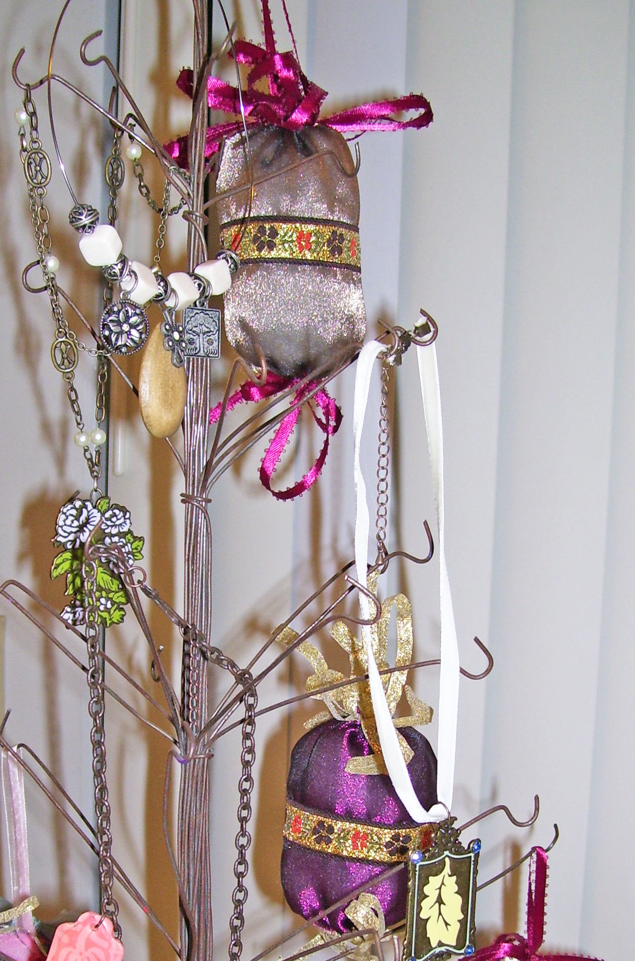Here is another delightful decoration for your house. It’s an organza fabric ball ornament wrapped with a decorative floral ribbon and finished off with ribbon trim tassel. This decoration will give your home a classic Victorian feel.