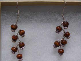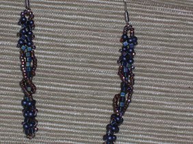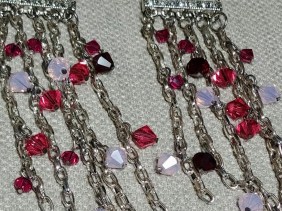 $15.00 Earrings, Swarovski Crystal Blues, Greens, chain, cascade, 4″ long