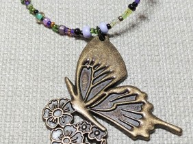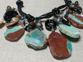 $10.00 Yellow leaf enamel pendant Choker Necklace White Velvet, Yellow Leaf, Blue Sparkle Pendant, 15″ to 18″ length