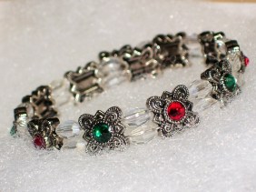 $15.00 Earrings, Swarovski Crystal Blues, Greens, chain, cascade, 4″ long